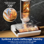 Auto-Nettoyage Flashdry : Utilisation d'eau douce chauffée à 70°C pour dissoudre efficacement les taches et nettoyer en profondeur du tuyau au rouleau-brosse. Il subit ensuite un séchage scellé à 70°C pour fournir une extraction d'eau puissante de chaque partie. Le rouleau-brosse tourne dans les deux sens pour rendre la brosse plus pelucheuse et plus sèche, tout en réduisant les odeurs.